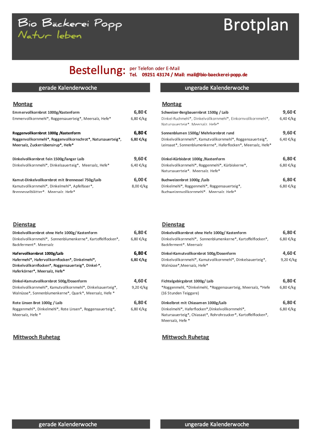 Brot kaufen Brot bei uns bestellen, so funktioniert's. Brotplan aufrufen Brot auswählen Uns per E-Mail, Fax oder telefonisch kontaktieren Download Brotplan PDF 0,2 MB